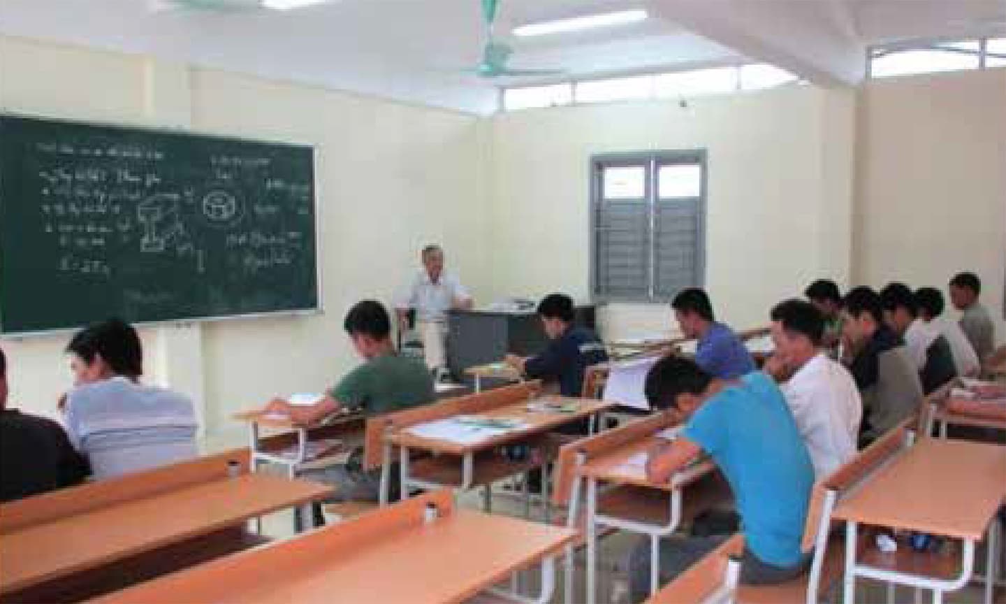 3ヶ月から6ヶ月間以内で研修生に3級日本語の基礎を学習させます。さらに、研修業務関連の専門用語を学習させます。実習生達がその後の日本で3年間研修しながら自ら日本語を学べるような学習方法も教えています。日本語の先生は日本人と日本で長年の勤務経験のあるベトナム人です。日本語とともに、日本の習慣、生活様式、考え方、働きぶり、交通ルールなども教えています。研修生が日本に来たら、早めに新しい生活に慣れるように徹底的に教育します。